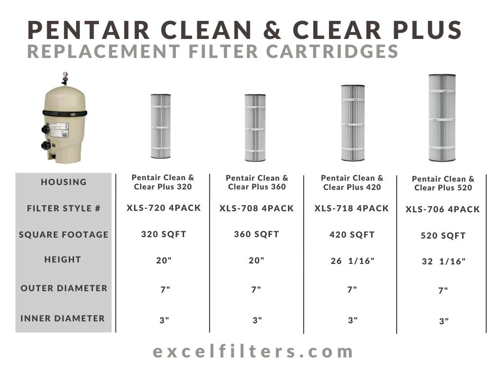 XLS-706 4 Pack Replacement Filters for Pentair Clean Clear 520 and Waterway 525. Also Replaces Pentair R173578 and 178585, Unicel C-7472, Filbur FC-1978 and Pleatco PCC130